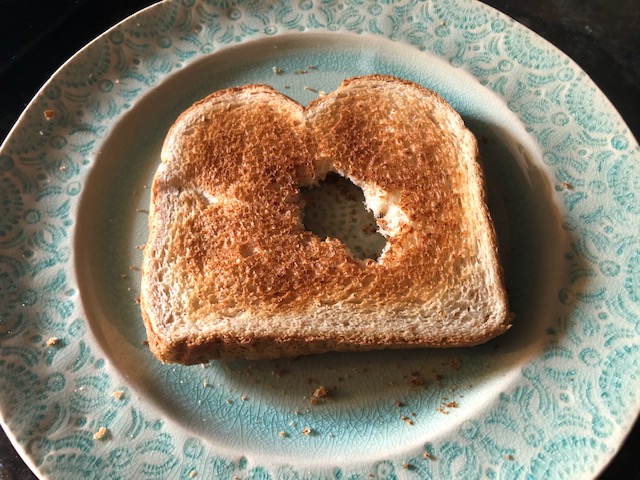 By the way, eating toast from the middle is a little messier and seems less efficient. So, not all new ways are better, but you never know until you give it a try!